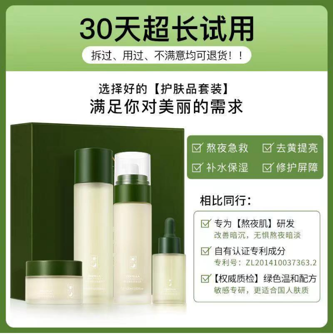 【熬夜救星】积雪草熬夜四件套补水保湿去黄提亮水乳套装面霜男女