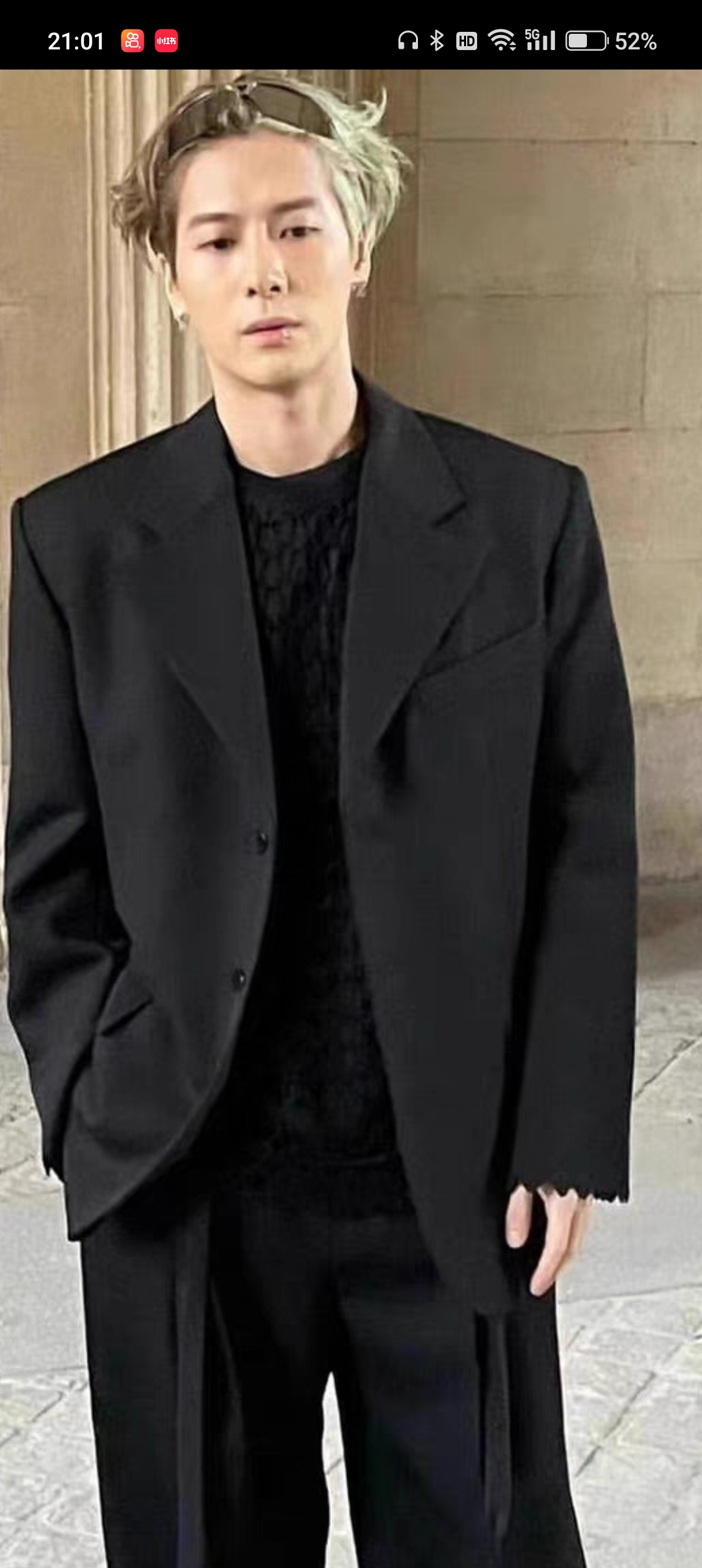王嘉尔同款黑色廓形cleanfit美式休闲西装外套高级感气质垫肩西服