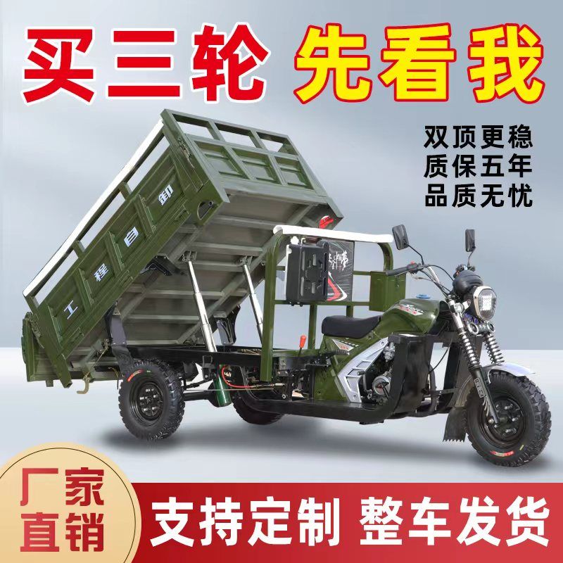 新款自卸三轮汽油摩托车宗申燃油三轮车货运农用载重王五轮翻斗车