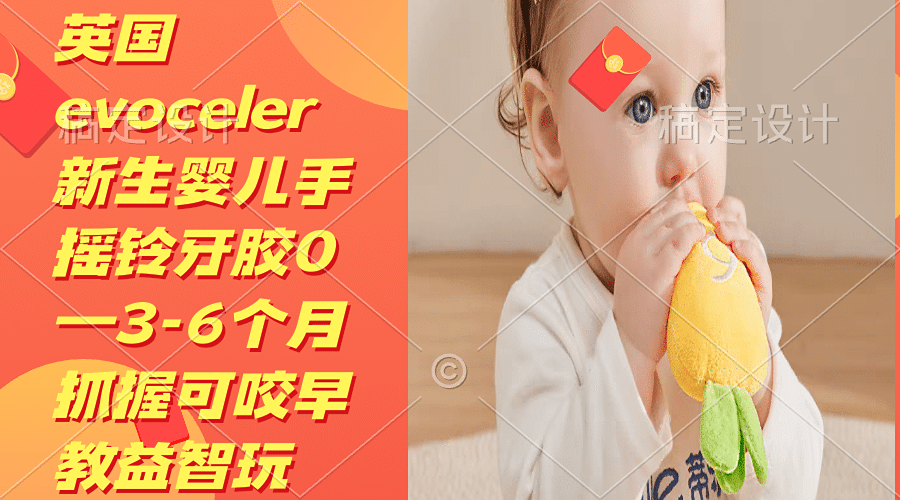 英国evoceler新生婴儿手摇铃牙胶0—3-6个月抓握可咬早教益智玩具