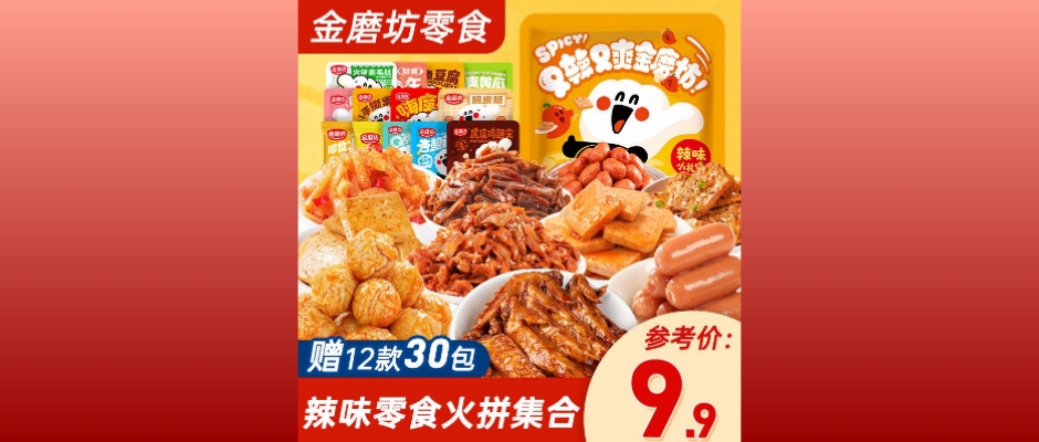 金磨坊零食大礼包鸡翅尖烤脖辣味解馋小零食辣味零食礼包零食套装
