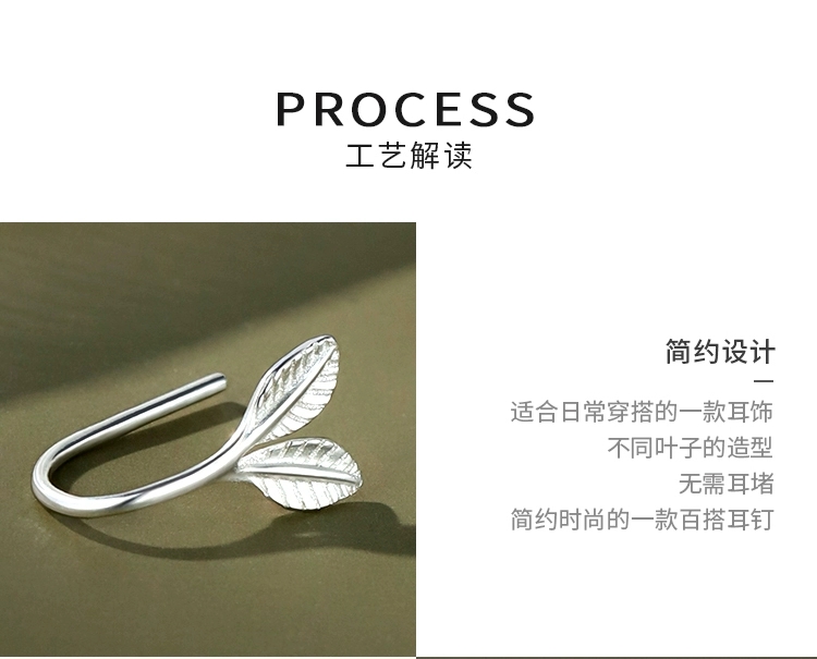 小妖部落小嫩芽耳钉999足银树叶耳环高级感养耳洞耳骨钉小众饰品