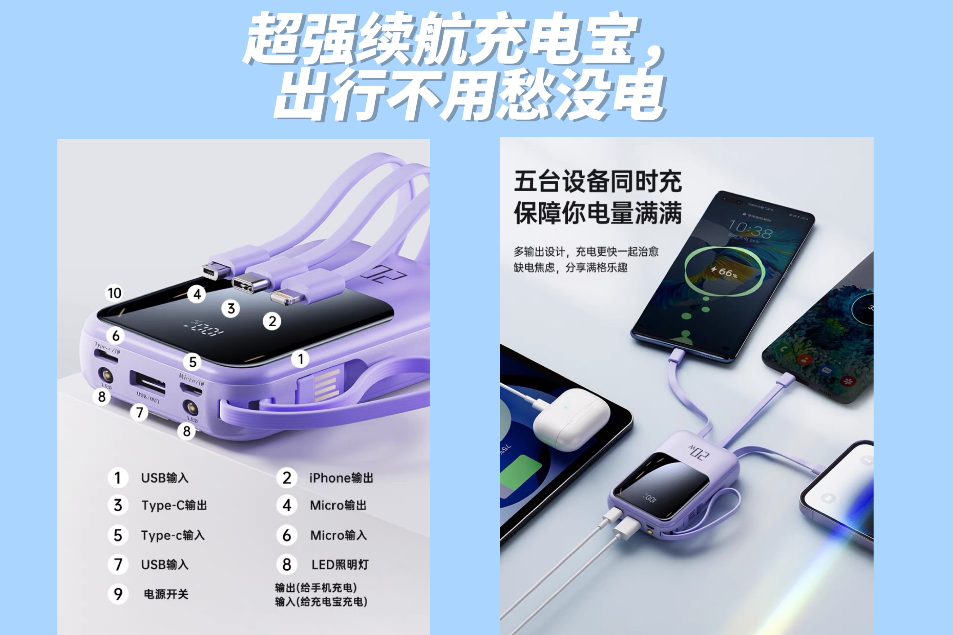 新款充电宝超大容量官方旗舰店正品自带线高端20000毫安超薄小巧便携快充可爱小巧适用苹果华为小米