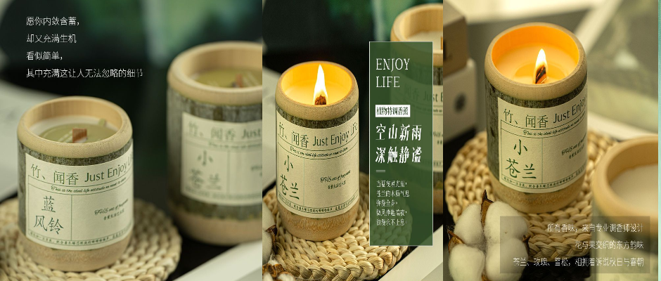 竹筒香薰点燃式卧室蜡烛茶香持久手工香氛原创安神助眠梅子煎茶