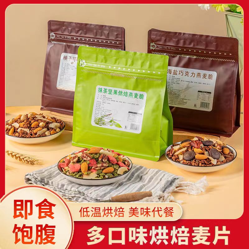 抹茶草莓榛子可可海盐巧克力坚果即食坚果烘焙麦片非油炸免煮低温