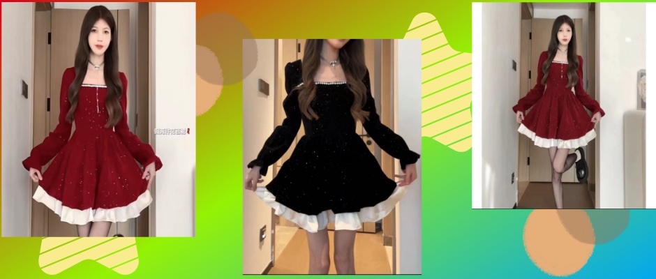 法式气质甜美减龄掐腰连衣裙秋冬款纯欲风性感少女感拼接丝绒裙子