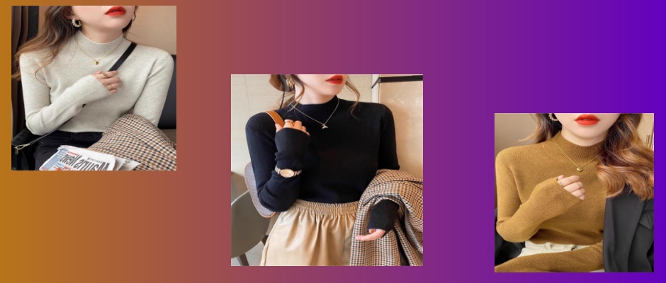 半高领针织衫女秋冬复古软糯修身保暖打底衫纯色洋气长袖内搭上衣