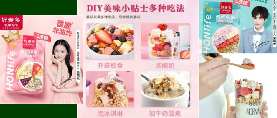 好麦多HONlife奇亚籽桃桃桂花/胶原蛋白玫瑰桂花酸奶水果谷物燕麦片330g