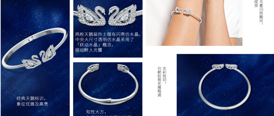 施华洛世奇 DANCING SWAN 天鹅125周年纪念款开口手镯 礼物送女生