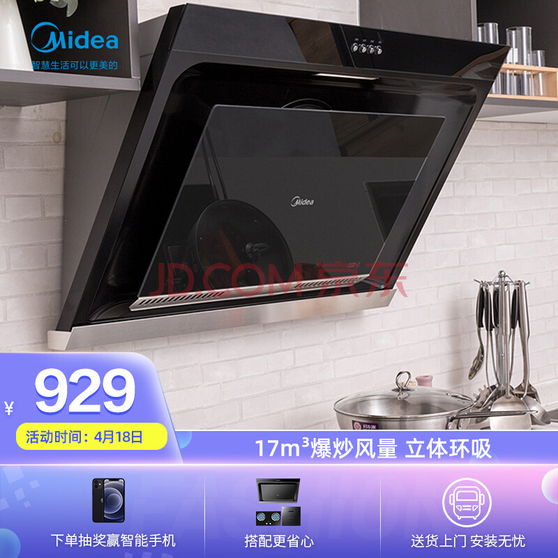 美的(Midea)J30京品家电 油烟机 17爆炒大吸力 侧吸抽油烟机 立体环吸 家用吸油烟机