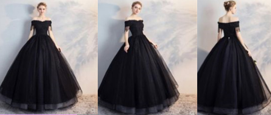 新款黑色婚纱主持人礼服女学生演出服艺考独唱蓬蓬裙长款影楼主题