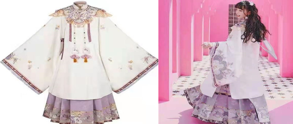 【豆蔻】[玉兔少女] 绣花长袄云肩马面裙明制汉服女春 立领斜襟长袄 白紫色 s
