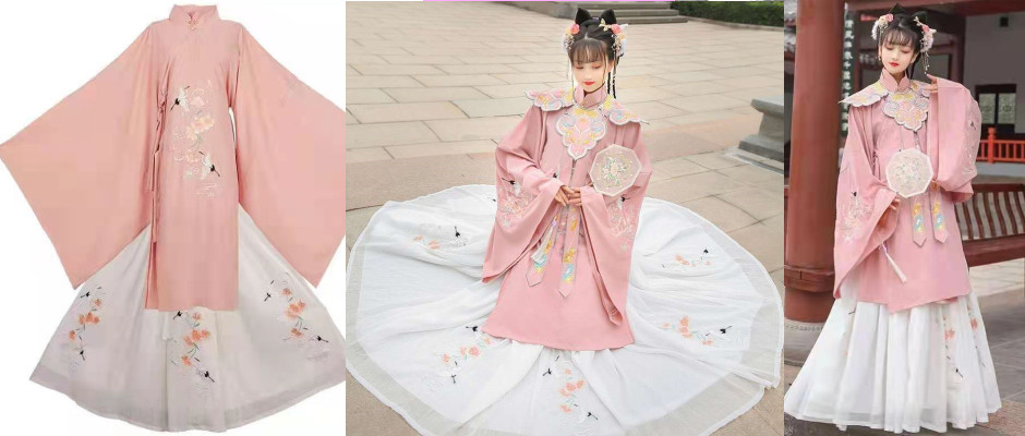 汉服女明制【桃鹤吟】正品原创立领斜襟长衫齐腰褶裙重工刺绣春秋 全套 粉色 s