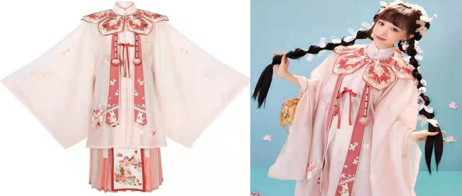 【豆蔻】[兔兔草莓] 立领长衫云肩百迭裙明制汉服女春 全套 草莓 s