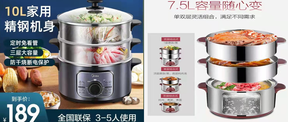 美的蒸锅电蒸锅多功能家用小型三层蒸汽锅蒸菜神器大容量电蒸笼