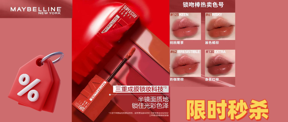 美宝莲纽约superstay锁吻棒镜面显白不沾杯唇釉口红#130
