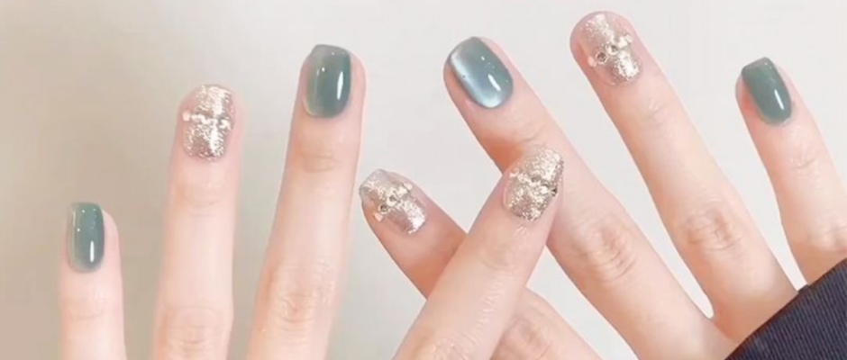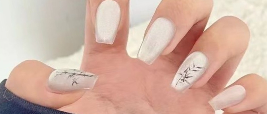 轻奢国风纯手工穿戴甲冰透爆闪极光竹子新中式猫眼美甲短款中长款