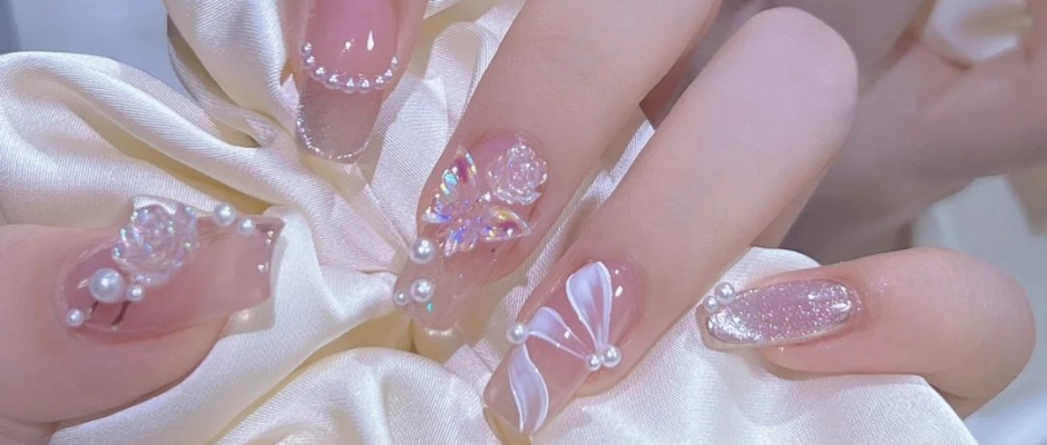 穿戴甲新款高级极光蝴蝶玫瑰显白简约纯欲腮红穿戴甲透明极光
