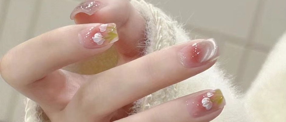 手工美甲穿戴甲爆款腮红郁金香法式猫眼ins郁金香美甲高级夏天