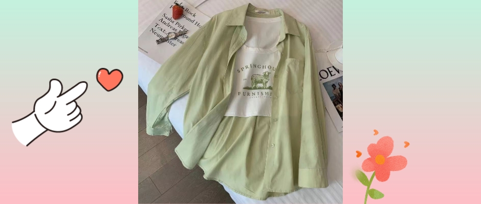 慵懒风绿色衬衫上衣女春秋韩版宽松外搭开衫百搭薄款防晒衣外套夏