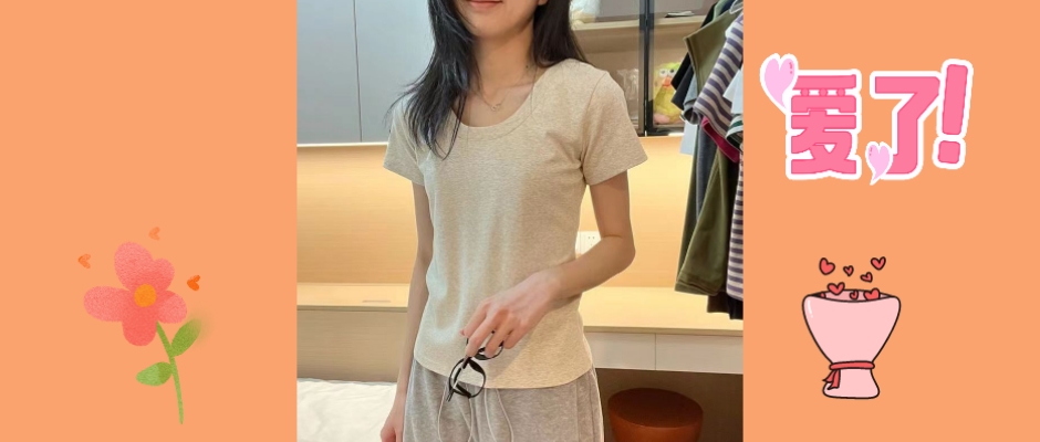 经典基础款U领纯棉短袖t恤女夏季灰色露锁骨打底衫修身显瘦上衣潮