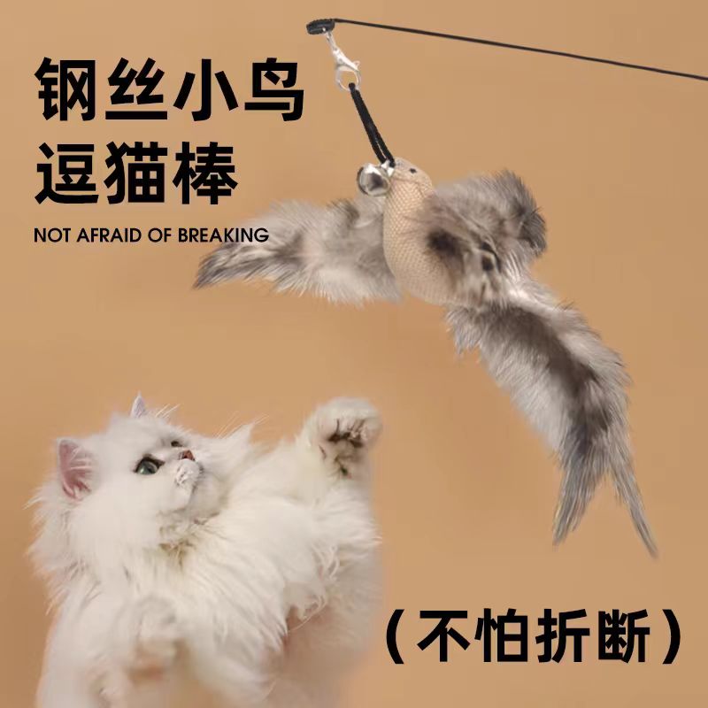 猫咪召唤器 钢丝小鸟逗猫棒——不怕折断 弹性钢丝材质,弯曲后可恢复原样,不惧弯折,方便收纳 可替换挂钩设计,逗猫杆可反复使用 小铃铛可引起猫咪注意力