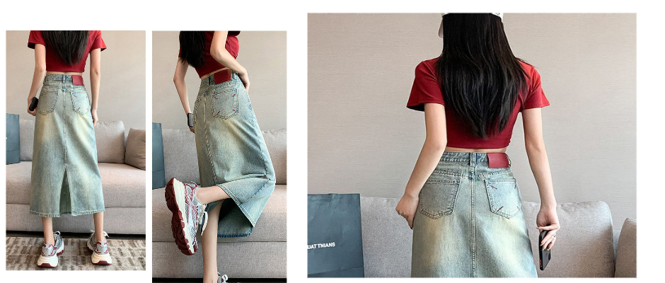 牛仔半身裙女2024水洗夏季新款设计感包臀裙a字梨型身材开叉长裙
