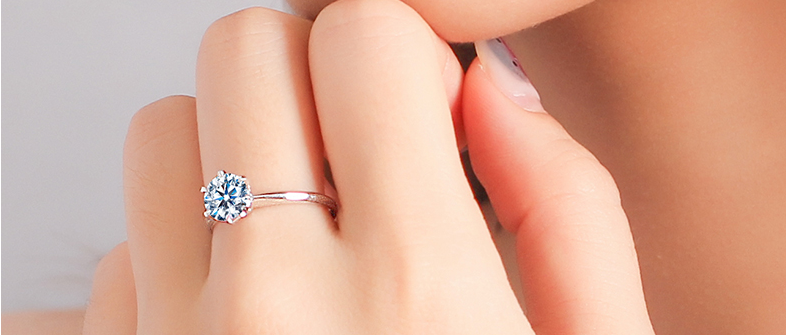 莫桑石白金钻石戒指