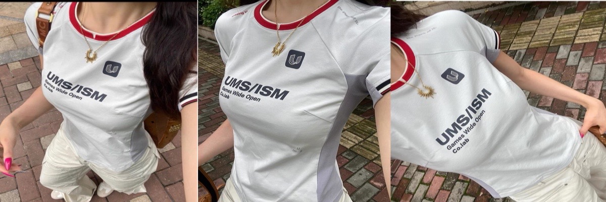 美式辣妹拼接设计感正肩短袖t恤女2024夏季撞色插肩修身复古上衣
