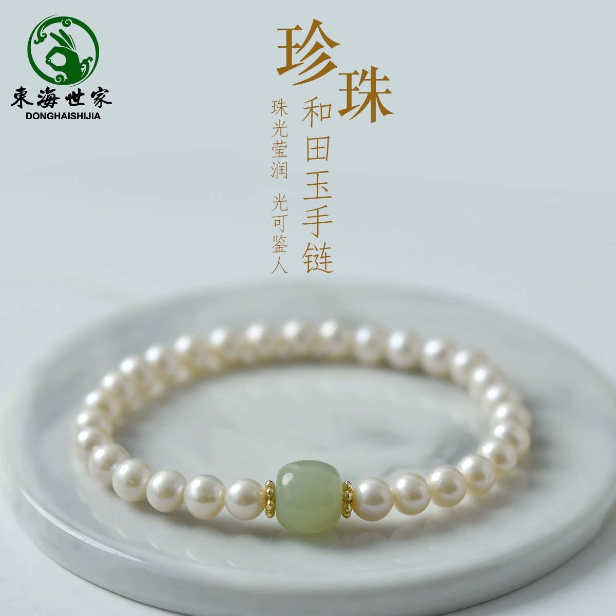 珍珠手链女东海水晶玛瑙翡翠玉石淡水散珠子项颈链晴水和田玉手串