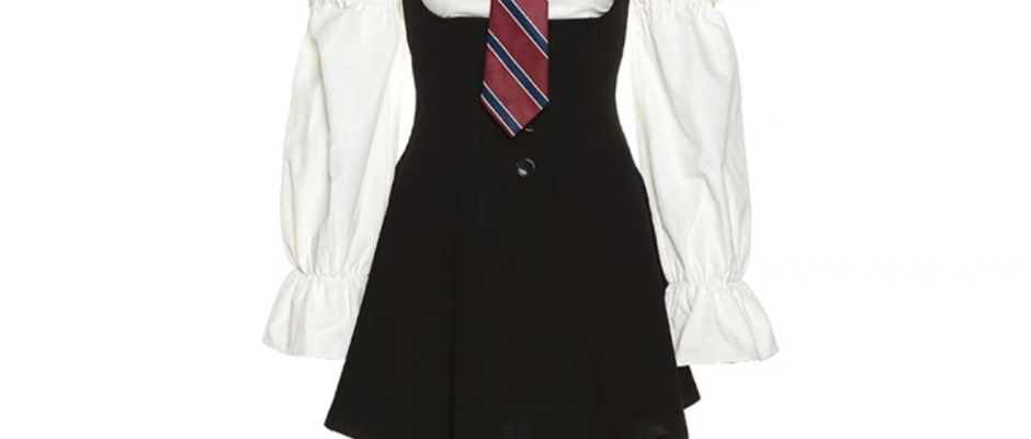 美式泡泡袖刺绣POLO领长袖衬衫连衣裙辣妹高腰A字短裙