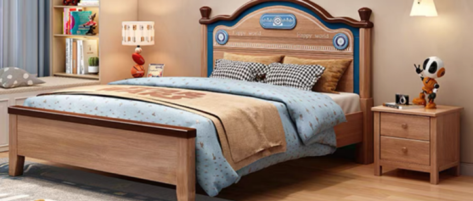 美式木蜡油1.5米青少年实木儿童床男孩1.2m1.35胡桃木男童单人床