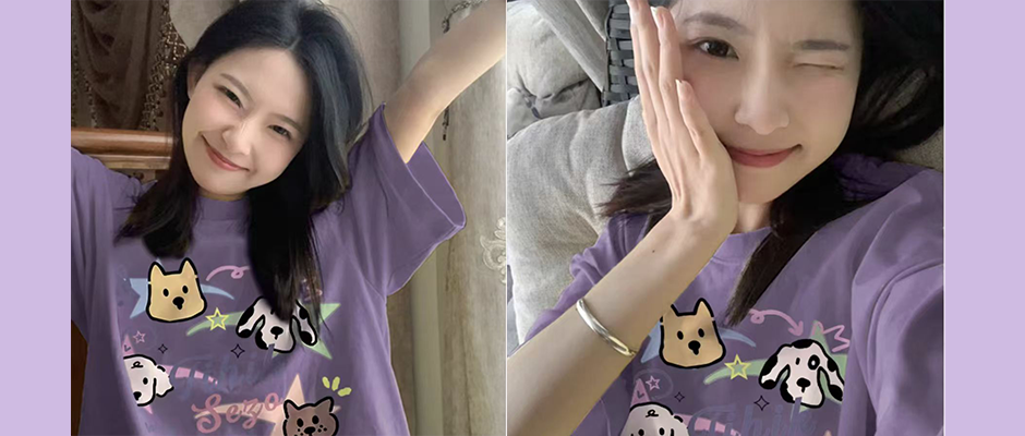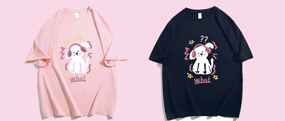 奶黄色卡通彩色线条狗狗新款夏季潮牌印花短袖小众情侣小个子上衣