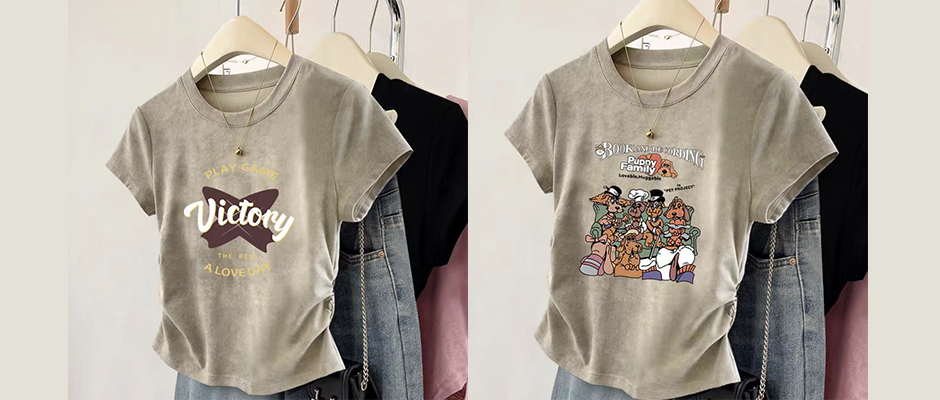 正肩圆领短袖t恤女夏季时尚好看印花洋气减龄设计感甜辣小上衣潮
