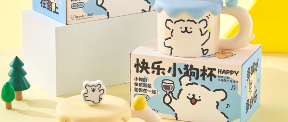 言仓线条小狗联名快乐马克杯水杯实用送女生闺蜜情侣生日礼物