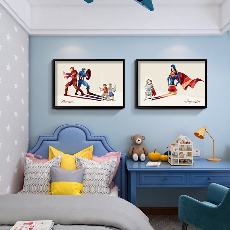 漫威装饰画复仇者联盟墙面卧室床头男孩儿童房挂画钢铁侠海报壁画