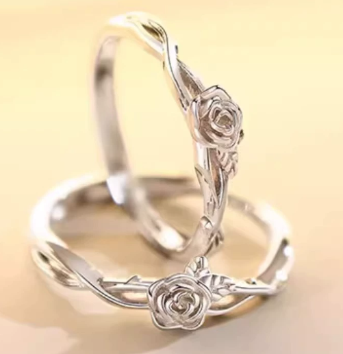 山茶花银戒指