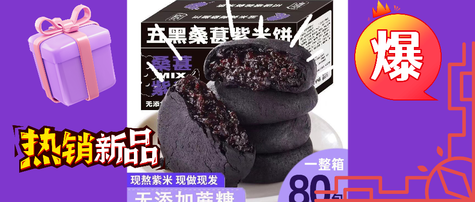 以黑养黑,五种健康营养材料有黑米、桑葚、黑豆、黑芝麻、黑枸杞。桑葚紫米搭配五黑粗粮,细细咀嚼,香软清甜,手工粗粮糕点好吃无负担,料足美味,匠心品质,口感软糯,回味无穷,新鲜松软,清新香气,拒绝甜腻
