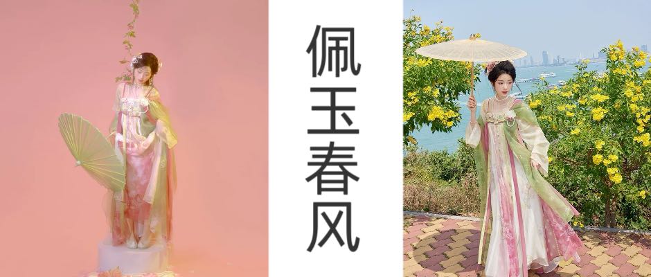 这套天真浪漫的[佩玉春风] 展现了少女时代的灿烂 整体的配色犹如春天般繁花缭绕 这种多而不乱的印花是很考验设计功力的 上衣是比较清透的嫩黄玫瑰牡丹印花 裙头的刺绣是花窗感觉的下裙的破裙印花每一片都很美 整体看起来呢 就是很适合草地奔跑的少女感啦
