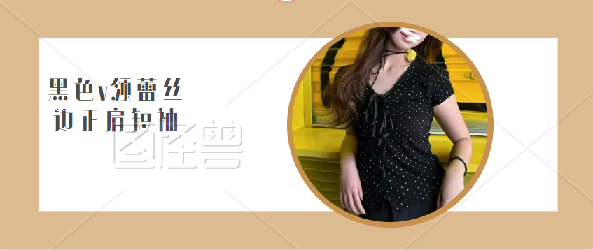黑色v领蕾丝边正肩短袖t恤女季2024新款短款修身显瘦波点纯欲上衣