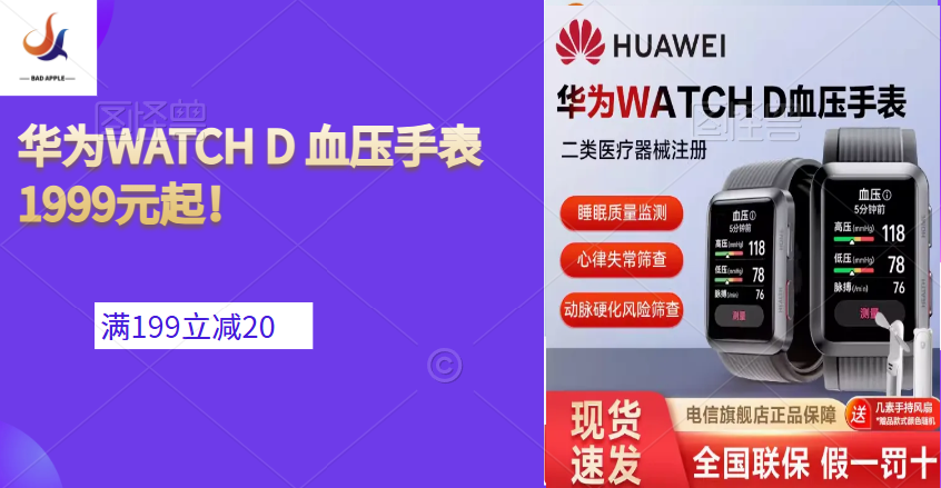 华为WATCH D血压检测智能手表#腕部心律心电图记录仪 房颤心脏早搏提醒 血氧测量健康运动老年人动脉硬化筛查