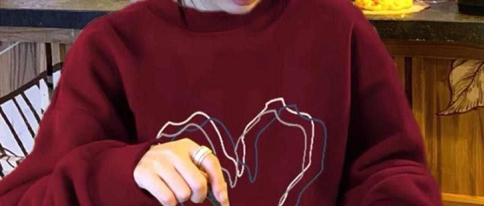 美式复古红色爱心潮牌小众无帽卫衣女春秋新款大码上衣服