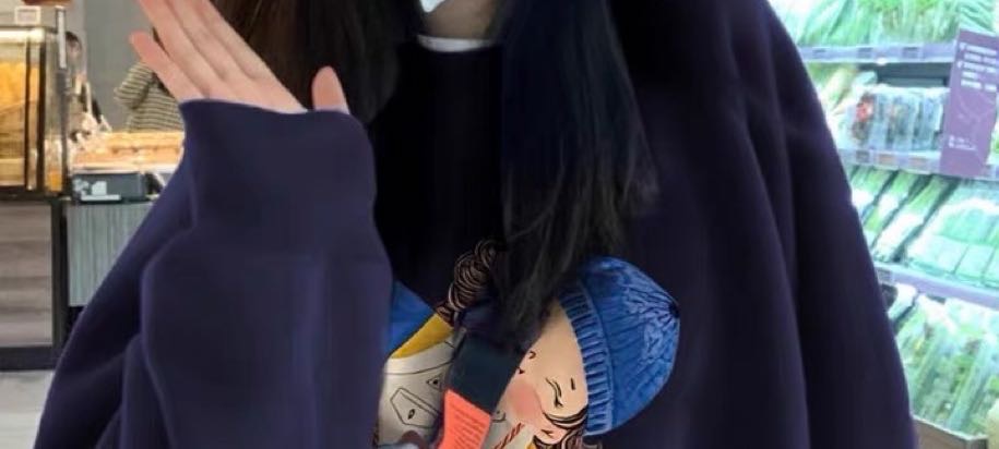 藏青色圆领卫衣女秋冬加绒加厚小个子慵懒风复古高级感套头上衣潮