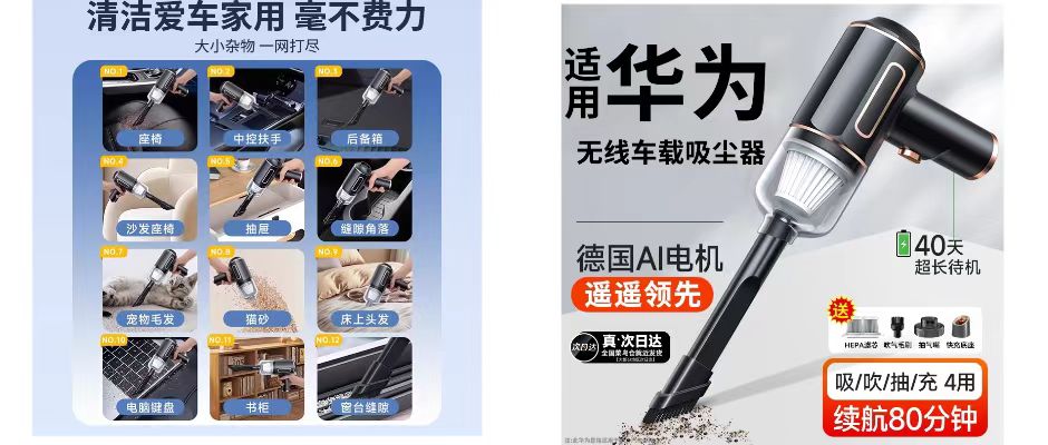 车载吸尘器适用华为2024新款汽车超强吸力家用手持大吸力迷你强力
