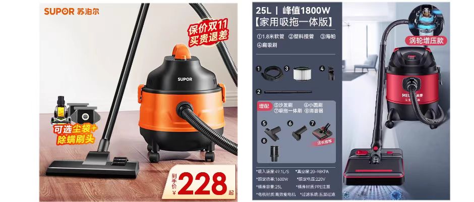 苏泊尔吸尘器家用大吸力工业用美缝专用强力大功率地毯开荒保洁机