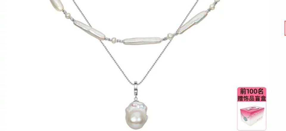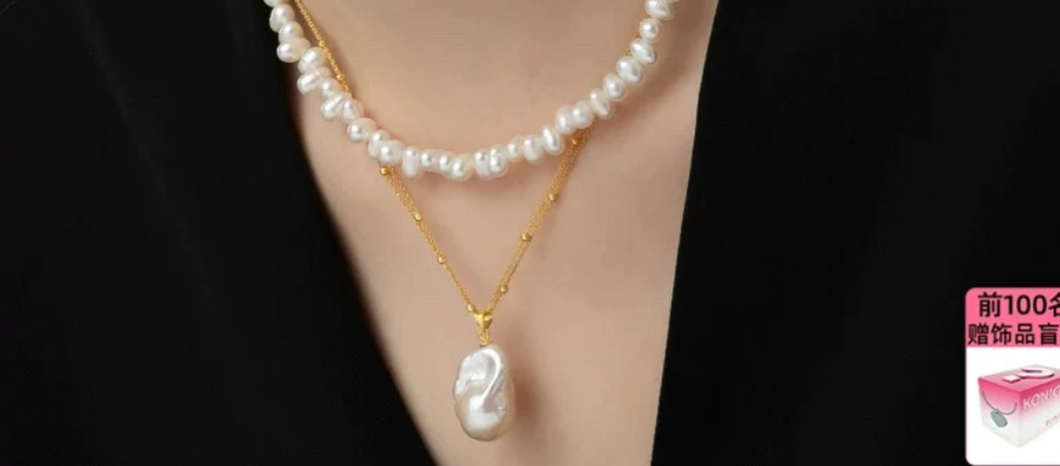 Konigin925纯银天然巴洛克珍珠项链女双层锁骨链颈链毛衣链配饰品