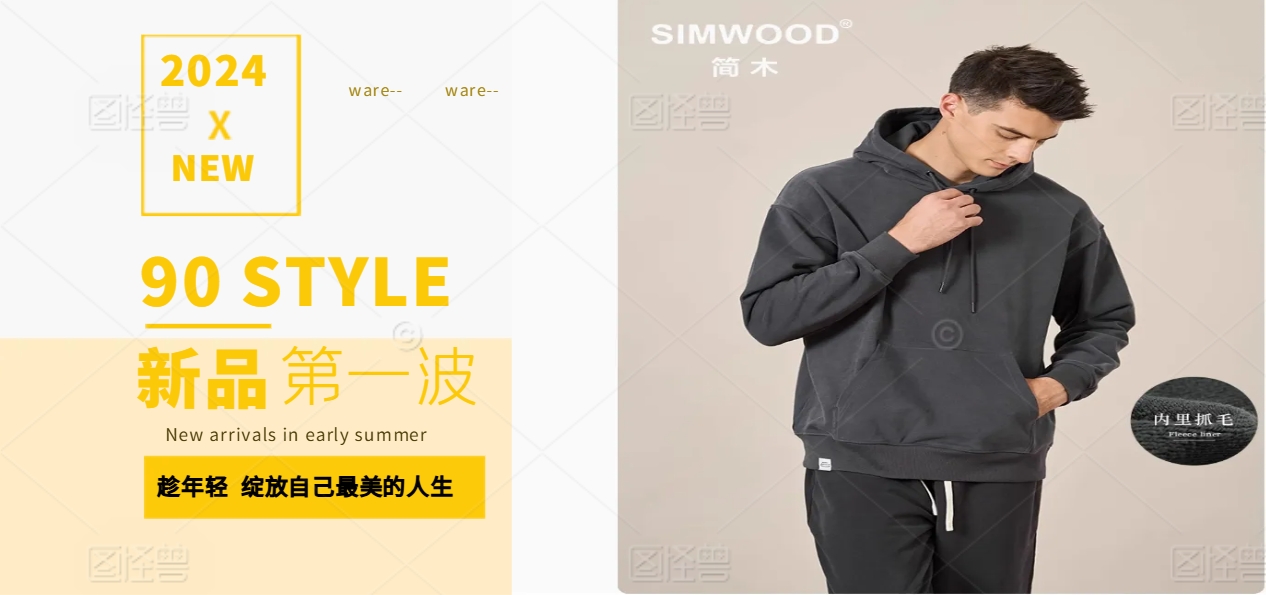 SIMWOOD/简木【宽松版】360g纯色抓毛休闲圆领/连帽卫衣男 可开发票
