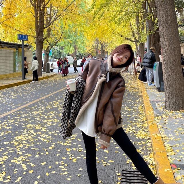 羊羔毛外套女2024冬季新款皮衣宽松立领机车服皮毛一体毛毛外套女