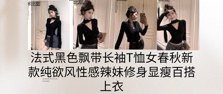 LSYX辣妹长袖打底女秋冬黑色镂空独特别致设计感修身百搭上衣