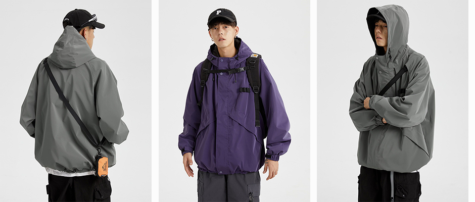 男道国潮休闲小挎包连帽冲锋衣男秋季潮牌百搭时尚设计感工装夹克